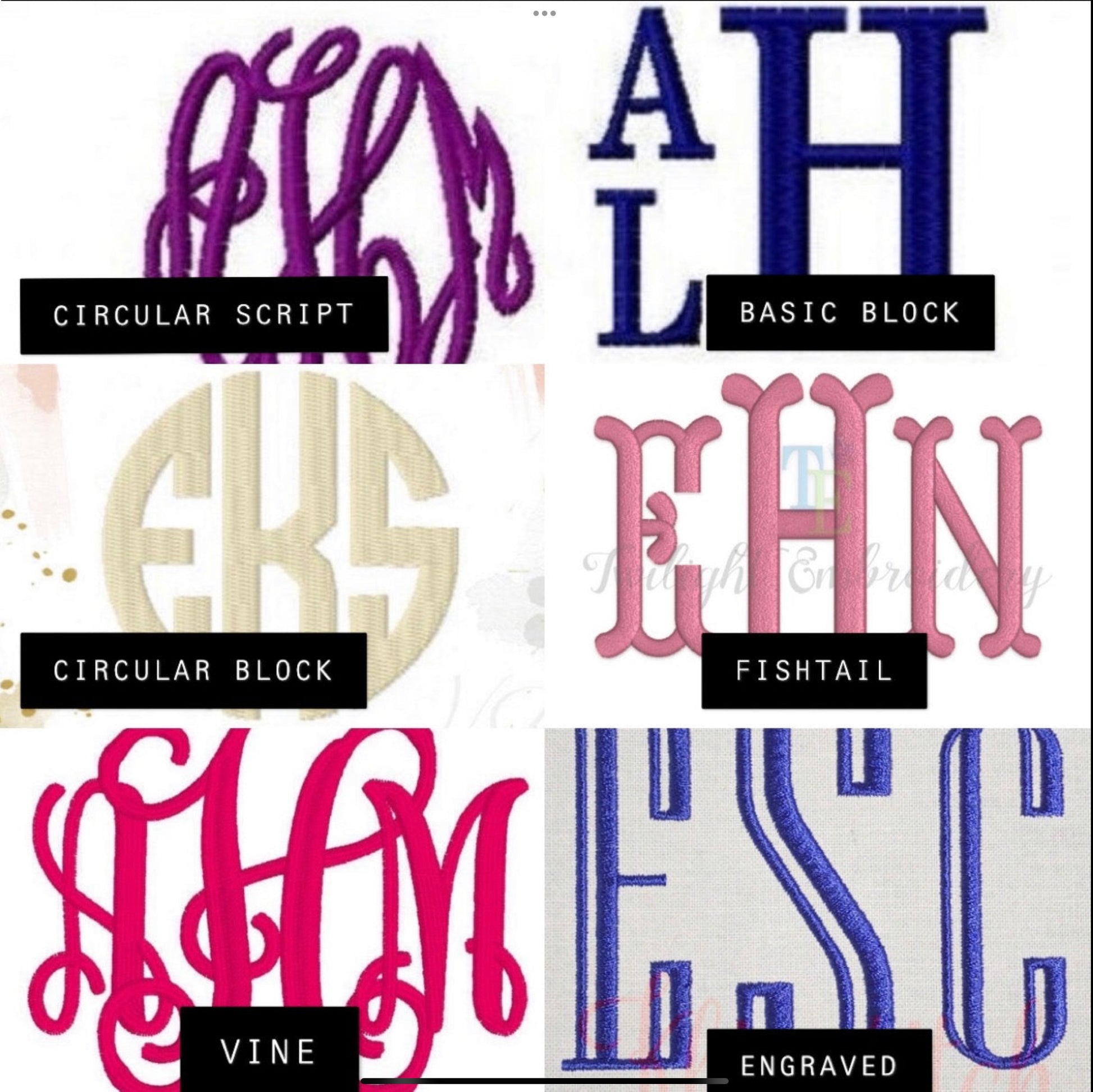 If there is a thread color or font that you have in mind, please leave it in the notes and I will do my best to accommodate if I can!